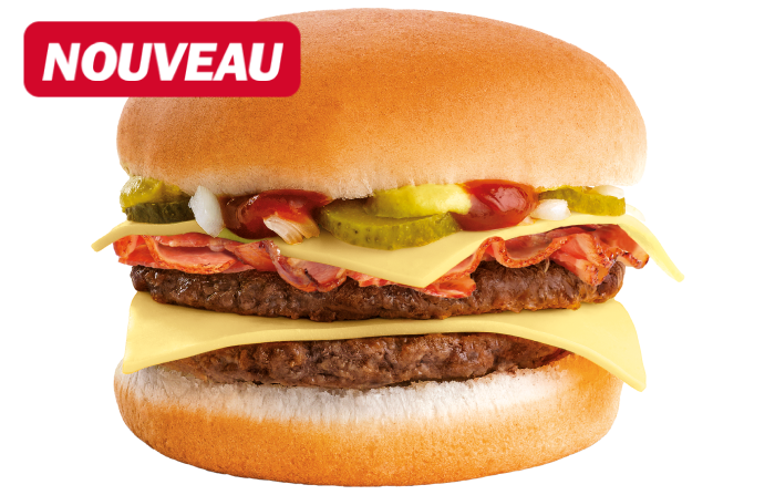 Réacteur allumé… L’Invincible Burger sort l’artillerie gourmande : pain rouge façon armure, steak haché 100% pur boeuf, galette Qrispy cheese* au cœur et une sauce fumée à pleine puissance ! Son pain rouge est coloré naturellement grâce à des concentrés végétaux, au radis et à la carotte.*Qrispy Cheese = palet de fromage fondant dans un enrobage croustillant. Smoky = fumée / Reactor = réacteur. (Origine viande bovine possible : France/Pologne)